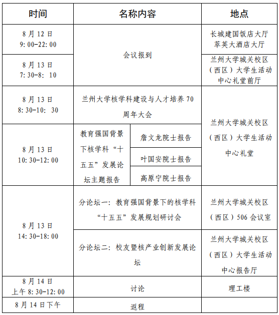 附件:兰州大学核学科建设与人才培养70周年大会暨教育强国背景下核学科“十五五”发展论坛活动日程