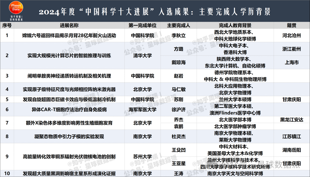 2025年3月27日,国家自然科学基金委员会发布2024年度“中国科学十大进展”。据微信公众号“星球数据派”统计,在 2024“中国科学十大进展”主要完成人中,兰州大学2007级核科学与技术学院校友王亚星上榜。