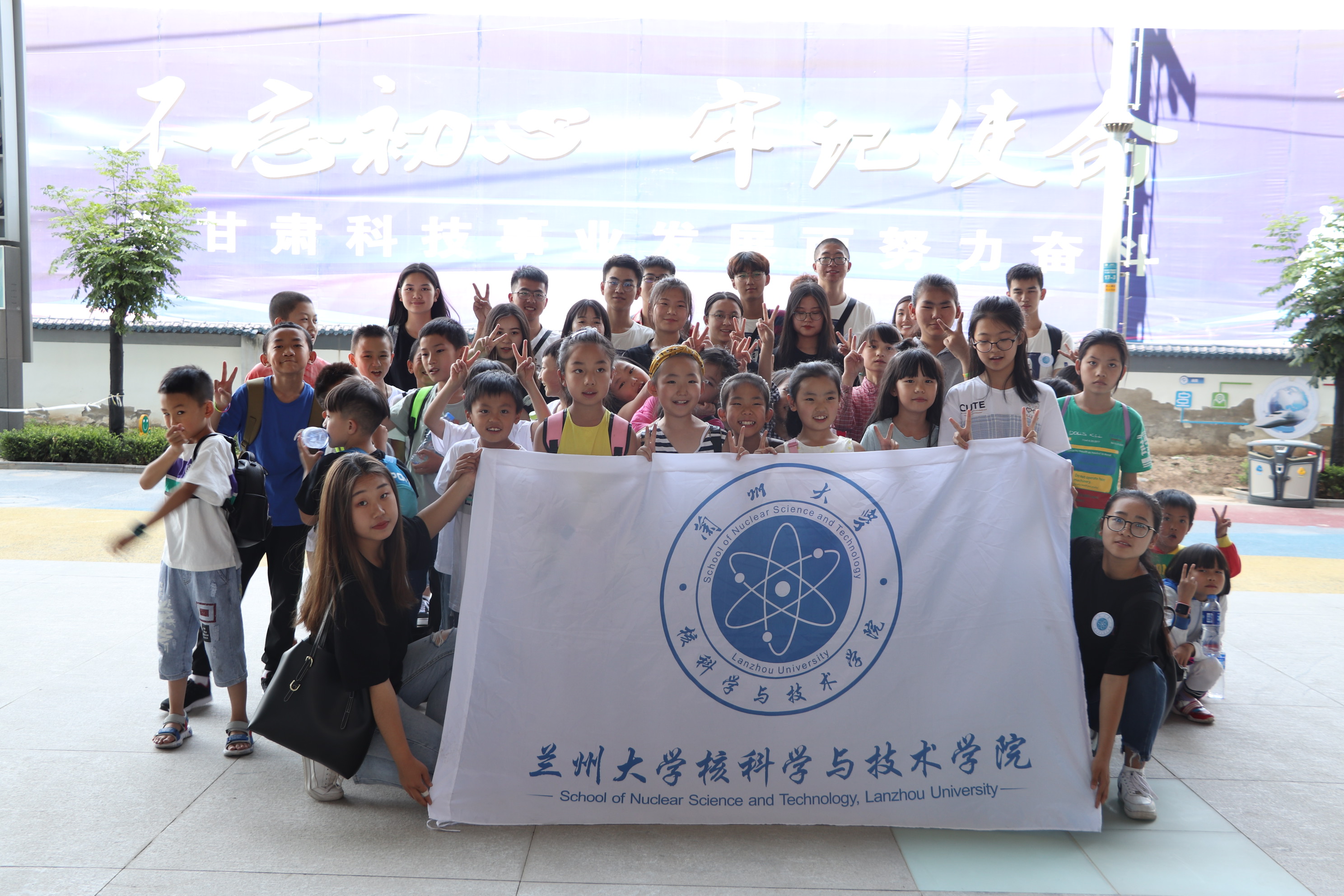 核科学与技术学院“筑梦蓝天·爱不孤独”支教团在甘肃省科技馆和留守儿童们合影留念。