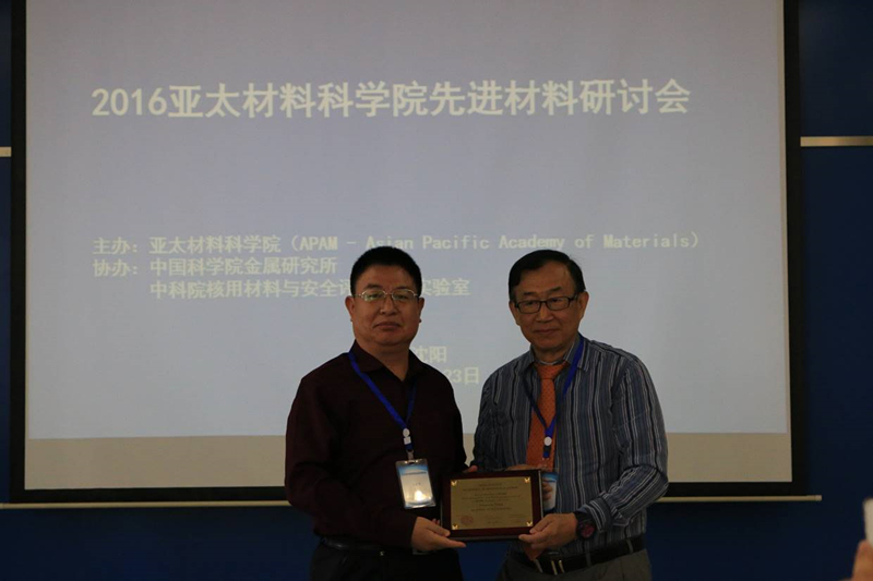 5月22日,亚太材料科学院(Asia Pacific Academy of Materials,APAM)主席黄惠良(Huey-liang Hwang)院士在沈阳向中国大陆2015年新当选亚太材料科学院院士(APAM Academician)的8名学者颁发了院士证。中国科学院近代物理研究所王志光研究员是获颁院士证的学者之一。