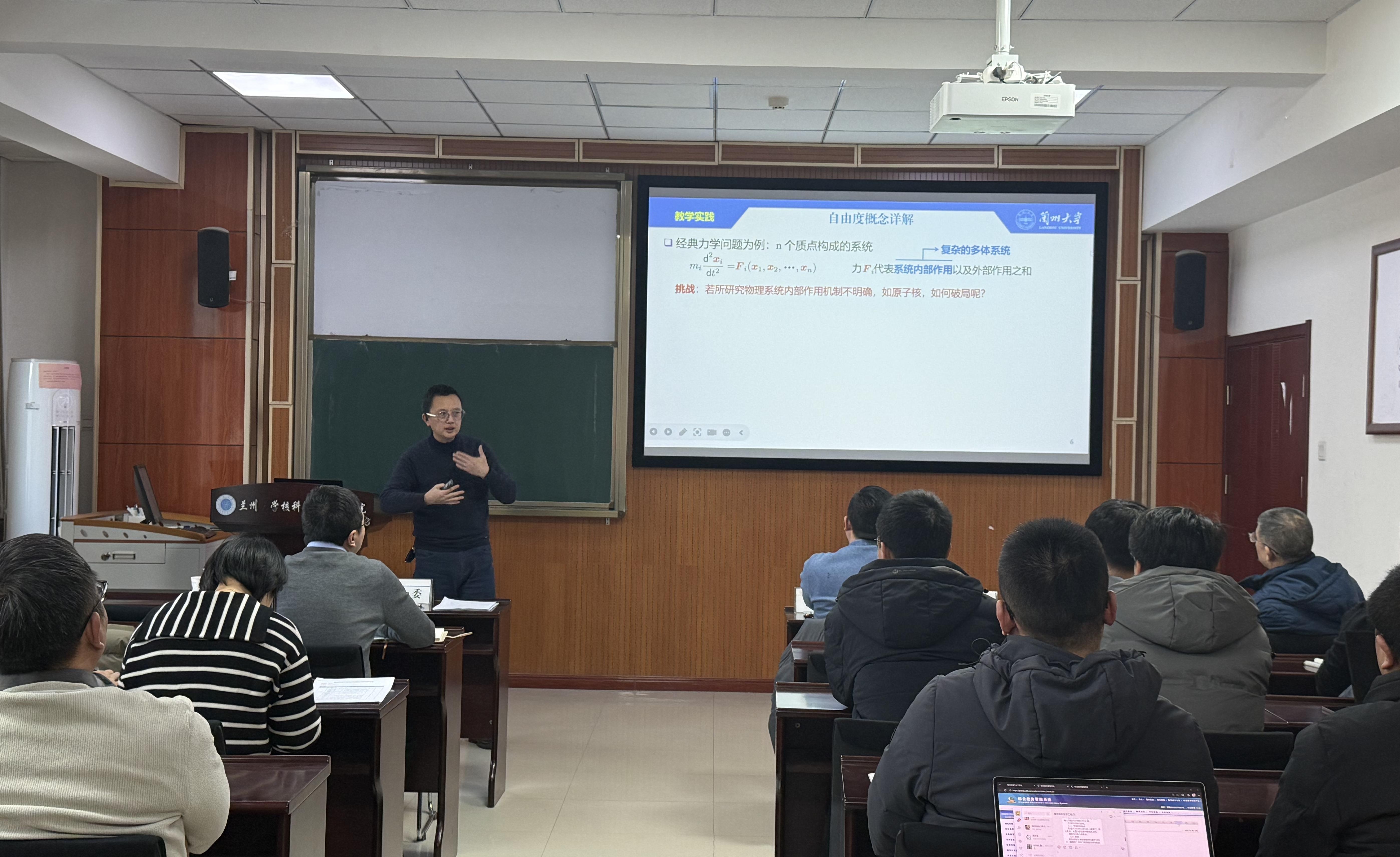 第一阶段教学经验分享环节,龙文辉老师以《理论力学》课程为例,围绕“融合交叉的数理教育改革实践”主题,分享了课程教学创新的实践经验与探索路径,为青年教师教学做了一次高质量的教学示范。